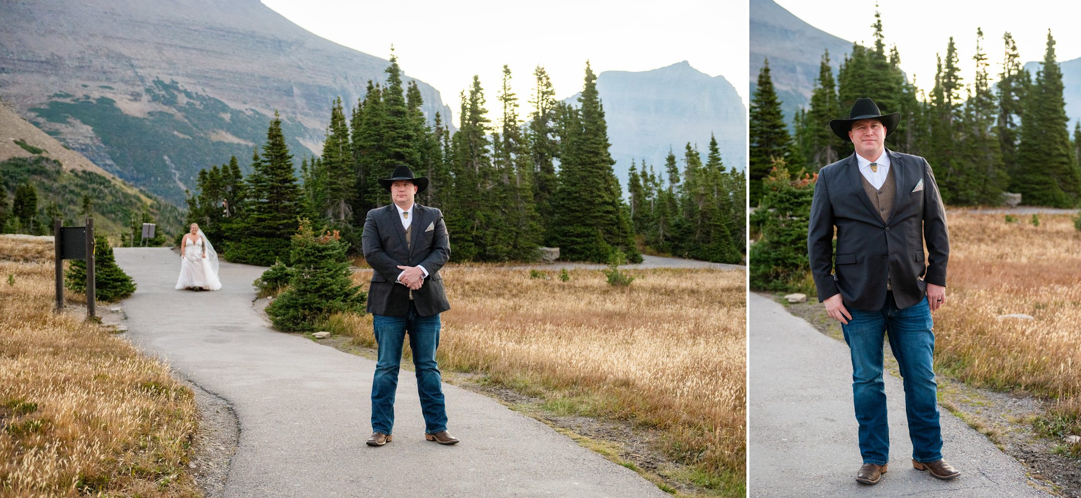 Just before sunrise, I brought Ethan up over the ridge and then Grace followed to have their first look. Ethan was bringing some excellent western Marlboro Man vibes and it was perfect for the Montana mountain scape. We were the only ones there and it was so peaceful. This path gets so busy later in the day, early risers are always rewarded in places like Glacier National Park.